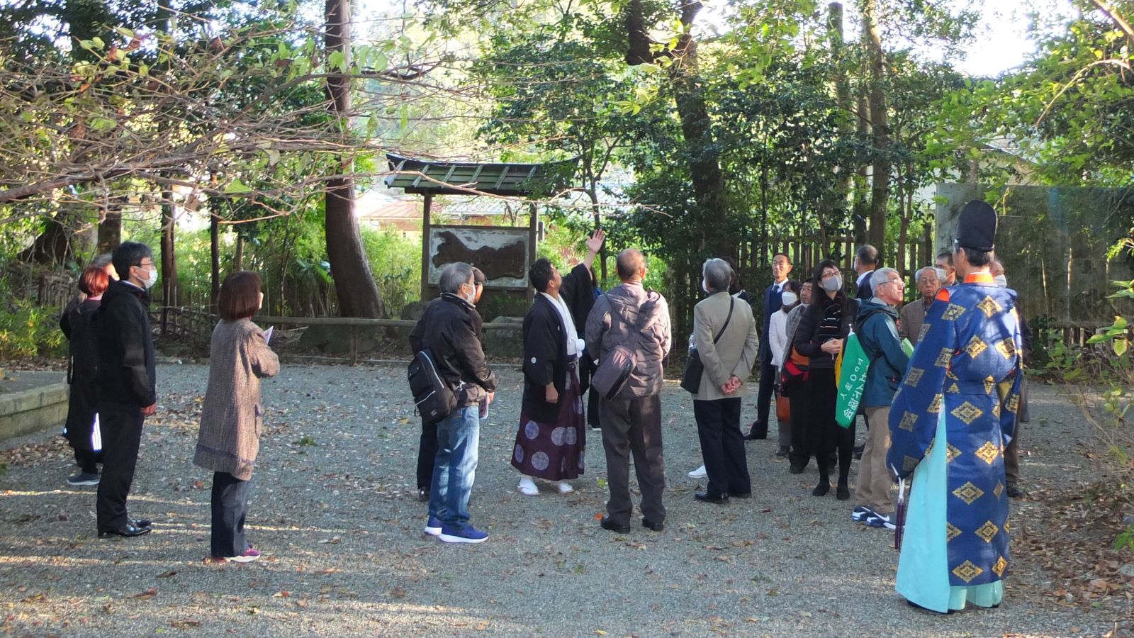 こちらでは、神職3 名の方々により、山名会の発展と会員各位の安寧を祈願していただき、その後は宮司様自ら境内を詳しく案内いただき、護良親王が辿られた生涯や、鎌倉宮の由緒について詳しくお話しを聞くことが出来ました。