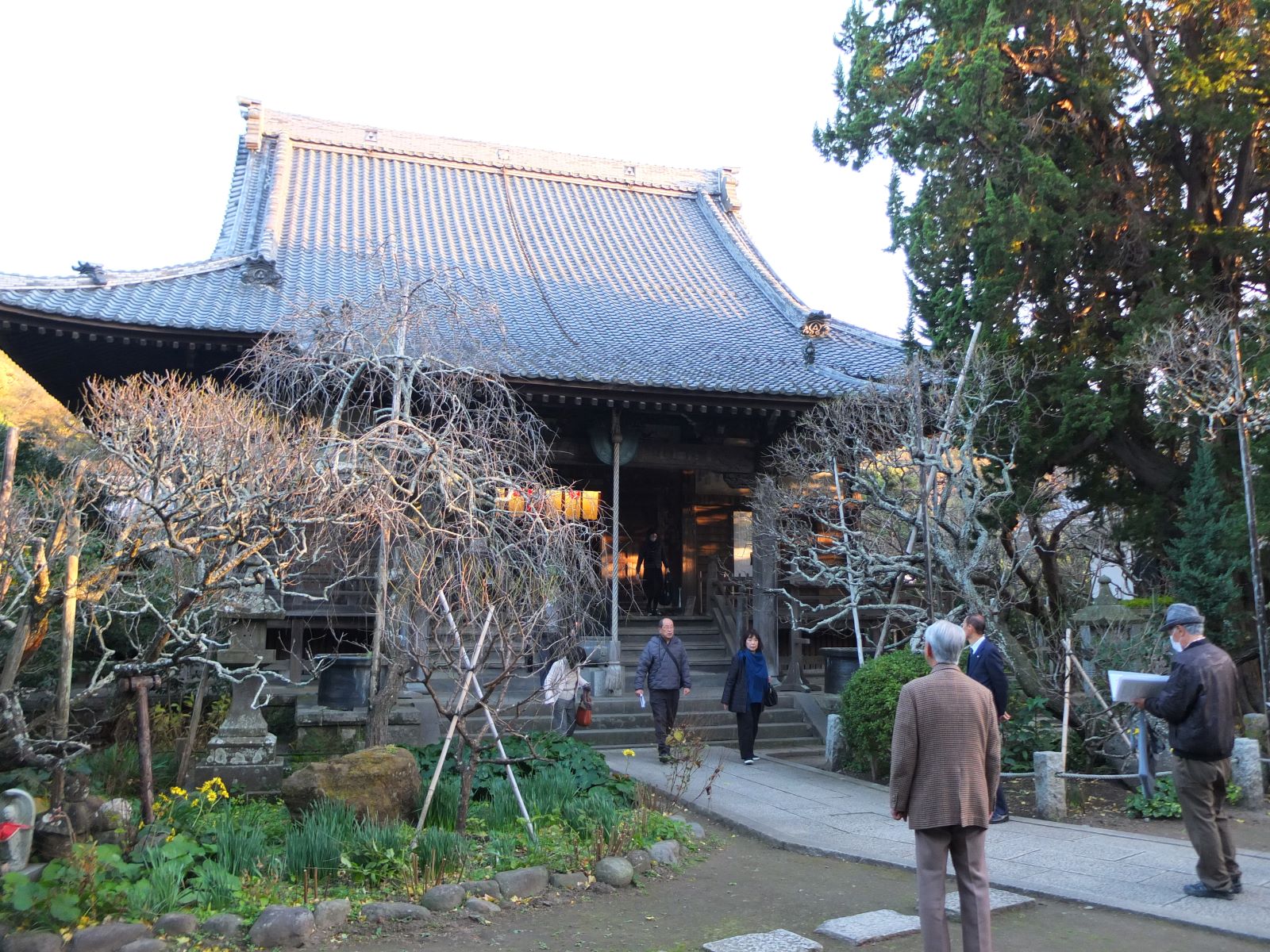 | 11:30 | 鶴岡八幡宮横そうび園駐車場集合、バス乗車。 鎌倉駅着10:39着、11:01着の電車あり。 |