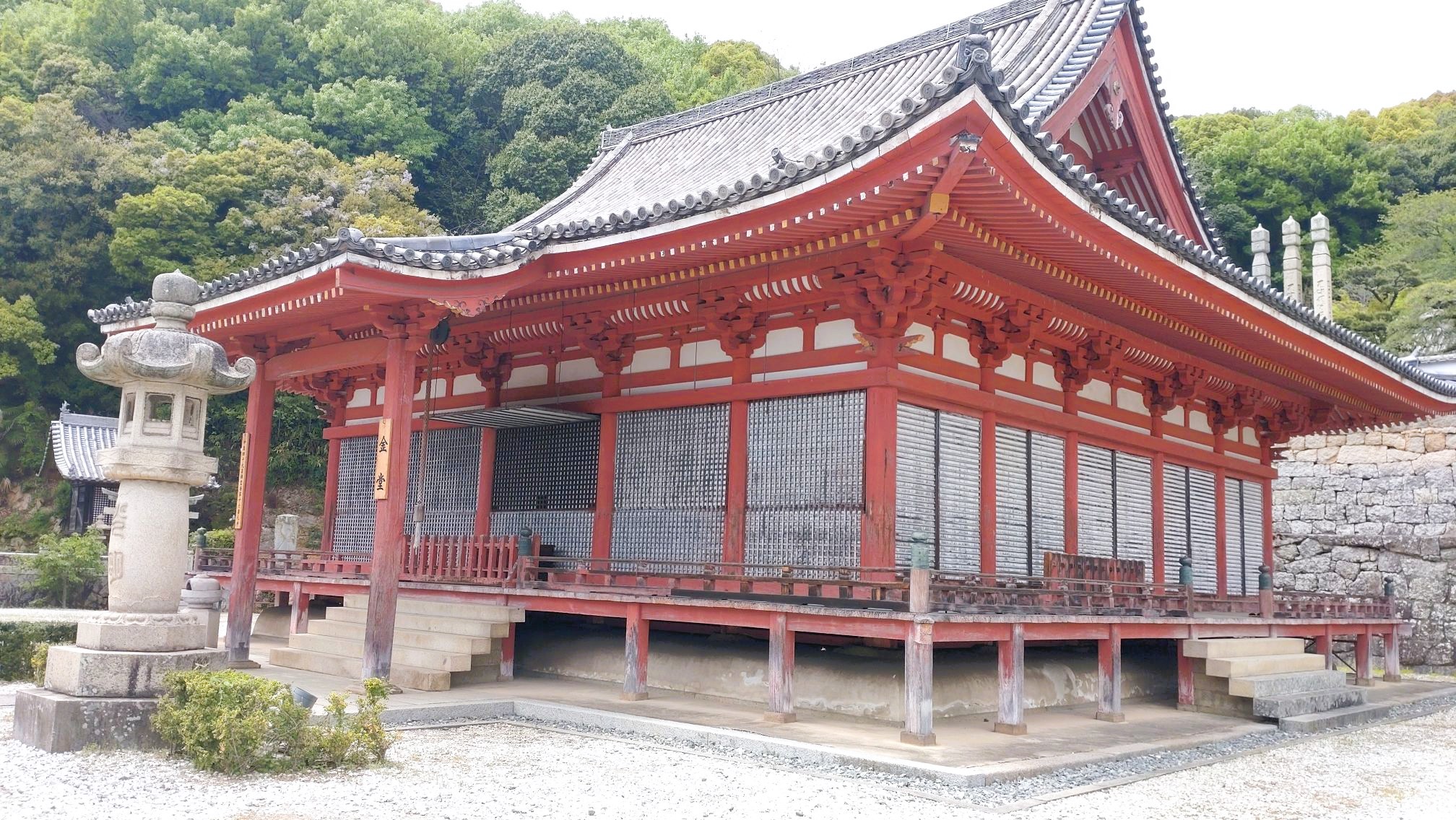 金堂は行基菩薩開基と言われるが度々の火災に遭い、現在の建物は南北朝時代に山名氏が再建したもので重文指定。お寺の最上部に建つ三重塔は足利六代将軍・義教公による寄進で、此方も重文に指定され、往時の壮麗さを今に伝えている。
